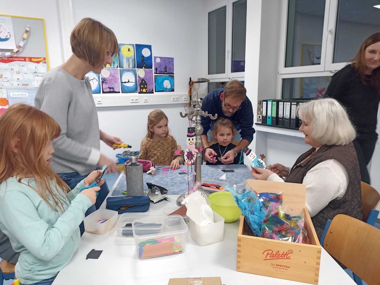 Die ganze Familie war eingeladen. So konnte jede und jeder aus einem besonders bunten Angebot von zehn verschiedenen Stationen seine „Schatzkiste“ mit Engeln, Nikoläusen, Schneemännern, Rentieren, Christbaumkugeln und weiteren kleinen Kunstwerken füllen. Konzentriertes Arbeiten sowie auch das Lachen und die Gespräche beim Genuss von Muffins, Leberkäswecken und Kinderpunsch, machten das Treffen zu einem Nachmittag der Begegnung und Vorfreude. Mit gemeinsamem Singen und einem herzlichem Dank an alle Mitwirkenden endete das bunte Treiben am Abend und die Kinder gingen erfüllt mit ihren „Schätzen“ nach Hause.