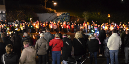 Im Anschluss zog sich der Martinsumzug als leuchtende Schlange durch Neresheim. Sichtlich stolz trugen die Kinder ihre selbst gebastelten Laternen vor sich her, bis sie sich zum Abschluss im Schulhof der Härtsfeldschule in einem großen Lichterkreis sammelten. Begleitet von der Blaskapelle der Härtsfeldschule wurden in stimmungsvoller Atmosphäre dort die klassischen Martinslieder gemeinsamen gesungen.