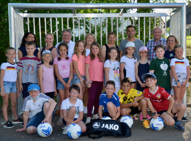 Es wuselt seit wenigen Tagen in den Pausen noch intensiver auf dem Schulhof der Grundschule Ohmenheim als sonst üblich. Es wird gerannt, getrickst, geschossen und gejubelt – überall sind strahlende Gesichter zu sehen. Grund für den großen Bewegungsdrang der Mädels und Jungs ist das neu installierte Fußballtor. Möglich machten die große Anschaffung die Familien Weber und Krätschmer sowie die Firma Wirth Elektrotechnik mit ihrer Spendenbereitschaft. „Wir haben bei allen offene Türen eingerannt“, erzählen Natalie Glückschalt und Martina Schiele unisono. Die beiden Lehrerinnen hatten sich gemeinsam mit ihrer Kollegin Elisabeth Fedyna um die Umsetzung der Idee, den Pausenhof aufzuwerten und den Kindern Bewegungsanreize zu schaffen, gekümmert. Glückschalt: „Die Bereitschaft uns zu helfen war großartig.“ Zusätzliche Unterstützung kam nicht nur vom Bauhofteam der Stadt Neresheim, das das Tor fachmännische im Boden verankerte, sondern auch von Sportartikelhersteller JAKO, der einige Fußbälle zur Verfügung stellte.